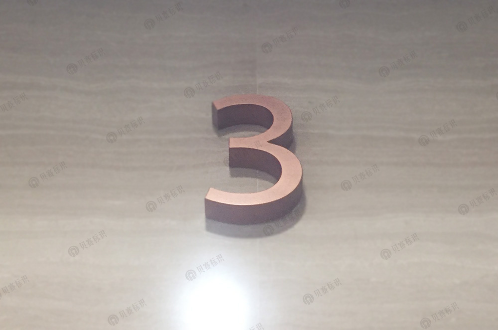 (酒店文字標識實物拍攝圖,電鍍拉絲玫瑰金不銹鋼立體字)